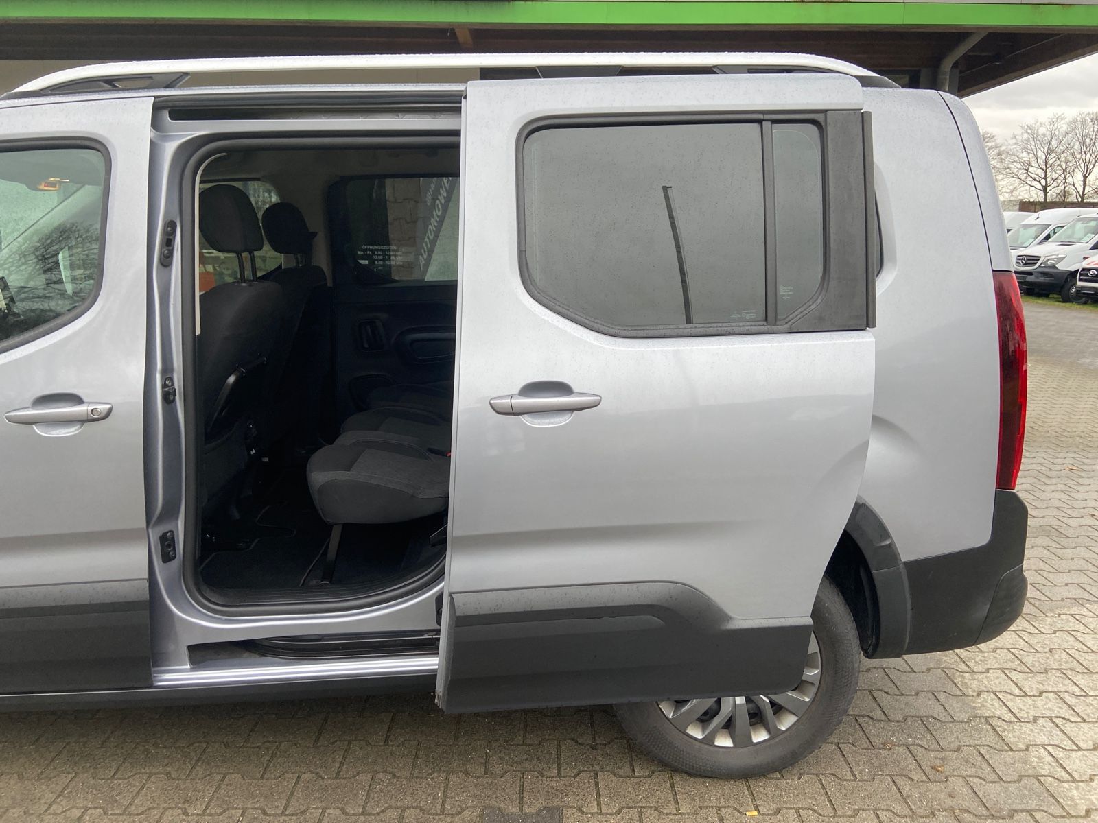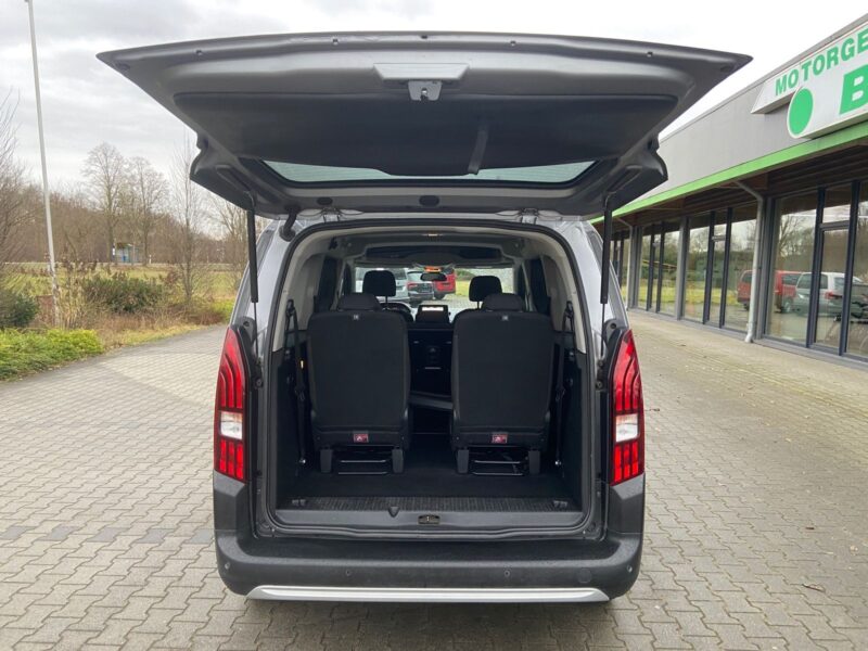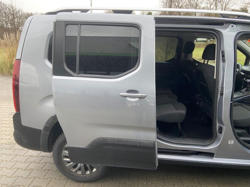 Ablagefach über den Sonnenblenden, Airbag Beifahrerseite abschaltbar, Airbag Fahrer-/Beifahrerseite, Audiosystem RCC DAB (Radio/CD-Player MP3-fähig), Autom. Begleitfunktion der Beleuchtung (Coming Home, Leaving Home), Außenspiegel elektr. verstell-, heiz- und anklappbar, Außenspiegel Wagenfarbe, Bordcomputer, Dachreling, Einparkhilfe hinten, Einschaltautomatik für Fahrlicht, Elektr. Bremskraftverteilung, Fahrassistenz-System: Berganfahrhilfe, Fensterheber elektrisch hinten, Gepäckraumabdeckung / Rollo, Heckklappe, Scheibe fest, Innenspiegel mit Abblendautomatik, Karosserie: 5-türig, Kindersicherung elektrisch, Klimaautomatik, getrennt regelbar Fahrer-/Beifahrerseite, Kopf-Airbag-System, Kopf-Airbag-System hinten, Lenksäule (Lenkrad) verstellbar, Motor 1,5 Ltr. – 96 kW Blue-HDI FAP, Parkbremse elektrisch, Radstand 2975 mm, Reifen-Reparaturkit, Reifendruck-Kontrollsystem, Schadstoffarm nach Abgasnorm Euro 6d-TEMP, Schaltpunktanzeige, Schiebetüren links und rechts mit Verglasung, SCR-System (AdBlue-Technologie), Seitenairbag hinten, Seitenairbag vorn, Sicherheits-Paket, Sitz vorn links höhenverstellbar, Sitz vorn rechts umklappbar, Sitzbezug / Polsterung: Stoff, Sonnenblenden mit Make-up-Spiegel, Stahlfelgen 7×16, Start/Stop-Anlage, Super-Zentralverriegelung mit Fernbedienung, Türentriegelung automatisch (bei Unfall), Türgriffe außen Wagenfarbe