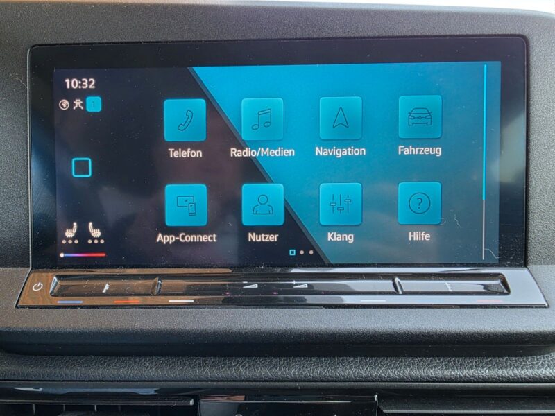 2.Sitzreihe Sitzbank klapp-, wickel- und herausnehmbar, Ablagefächer in Dachkonsole, Airbag Fahrer-/Beifahrerseite, Beifahrerairbag abschaltbar, Ausstattung Kombi, Automatische Fahrlichtschaltung (ALS), Außenspiegel und Türgriffe außen schwarz unlackiert, Abdeckung Schiebetürleiste silber, Bodenbelag vorn (Teppich), Dachreling/Dachträger Vorbereitung, Elektron. Stabilitäts-Programm (ESP) Bremsassistent, ASR/ABS, EDS, MSR, Fahrassistenz-System: Abbiegebremsfunktion und Ausweichunterstützung, Fahrassistenz-System: Multikollisionsbremse (Multi Collision Brake), Fahrassistenz-System: Müdigkeitserkennung, Fahrassistenz-System: Spurhalteassistent (Lane Assist), Fahrassistenz-System: Umfeldbeobachtungssystem (Front assist) mit City-Notbremsfunktion, Frontkamera (Multifunktionskamera Frontscheibe), Frontscheibe Verbundglas getönt, Funkschlüssel (2) klappbar, Fzg. ohne Schiebetür links, Geschwindigkeits-Regelanlage (Tempomat) inkl. Geschw.-Begrenzer, Getränkehalter vorn, Handschuhfach mit Klappe, beleuchtet, Heckklappe mit Verglasung, Heckleuchten Standard, Heckscheibe heizbar, Heckscheibenwischer, Innenausstattung: Dekoreinlagen matt, Innenspiegel abblendbar, Isofix-Aufnahmen für Kindersitz an Rücksitze (inkl. i-Size-Kindersitze), Karosserie/Aufbau: Kombi, Kindersicherung im Fahrgastraum elektr. betätigt, Lautsprecher (2), Lenkrad mit Multifunktion, Lenksäule (Lenkrad) mechan. verstellbar, Höhen-/Längsverstellung, Leseleuchten hinten LED, Leuchtweitenregelung, Luftzusatzheizung elektrisch, Motor 2,0 Ltr. – 75 kW TDI, Multifunktionsanzeige Plus, Nichtraucher-Paket, Notrufsystem, Parkbremse elektrisch mit Auto-Hold-Funktion, PKW-Zulassung, Radstand 2755 mm, Reifenkontroll-Anzeige, Schadstoffarm nach Abgasnorm Euro 6d, Scheibenwischer mit Intervallschaltung und Lichtsensor, Schiebetür rechts, SCR-System (AdBlue-Technologie), Seitenairbag vorn mit Center-Airbag, Kopf-Airbag-Einheit vorn und hinten, Seitenfenster im Lade-/Fahrgastraum hinten links, fest, Seitenfenster im Lade-/Fahrgastraum hinten rechts, fest, Seitenfenster im Lade-/Fahrgastraum vorn links, fest, Seitenfenster im Lade-/Fahrgastraum vorn rechts, fest, Sicherheitsgurte hinten außen mit Gurtstraffer, Sicherheitsgurte vorn mit Gurtstraffer, höhenverstellbar, Sitz vorn links mit Lehnenentriegelung, Sitzbezug / Polsterung: Stoff Double Grid, Sonnenblenden ohne Spiegel, Start/Stop-Anlage, Steckdose 12V im Koffer-/Laderaum, Türverkleidung Kunststoff, Verbandkasten und Warndreieck, Verzurrösen im Gepäck-/Laderaum, Warnanlage für Sicherheitsgurte vorn und hinten, Wärmeschutzverglasung grün getönt (seitlich / hinten)